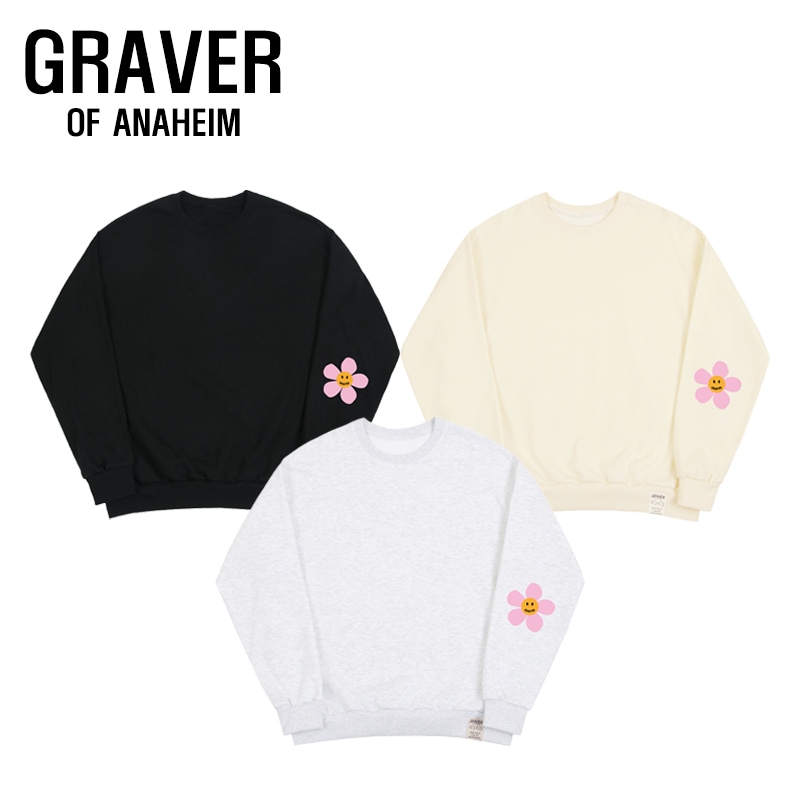 [UNISEX]Elbow pink flower dot sweatshirt_3color