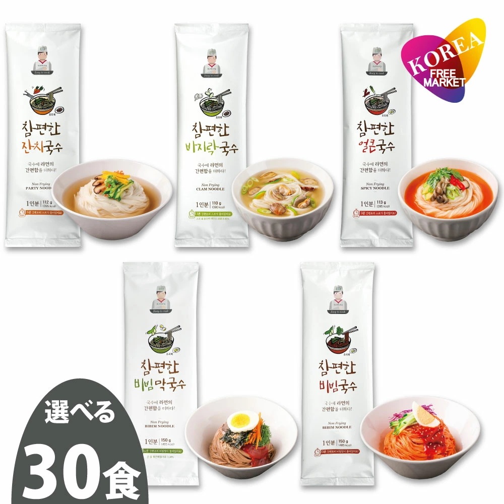 5種から選べる 30食 Easy to Cook クッス / スープ付 らくらくククス 韓国本場の味 ジャンチクッス あさりクッス ビビンクッス マックッス ピリ辛クッス 各1人前