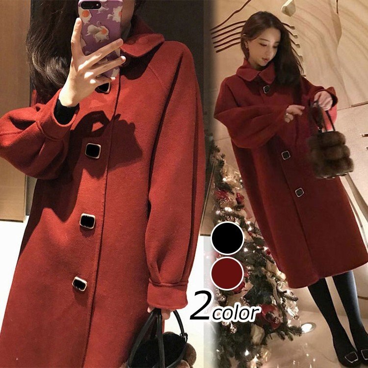ラシャコート コート ジャケット レデイース秋冬40代ダブルコート厚手韓国風 ロング丈 パフスリーブ