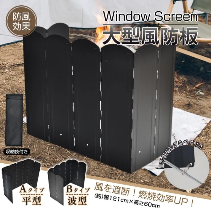 大注目!大型風防板 ウインドスクリーン シールド 風除けパネル 防風板 固定用リング ペグ付き 収納袋付き 耐久性 安定性 コンパクト 折り置み式 焚き火 コンロ ヒーター