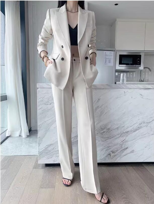 【38%OFF】品質良い レディースビジネススーツ 通勤 OL 結婚式 2点セット 「ロング丈コート+ストレートパンツ」パンツスーツ ダブルスーツ 制服 フォーマル 着痩せ リクルートスーツ カジュアル 司会 宴会
