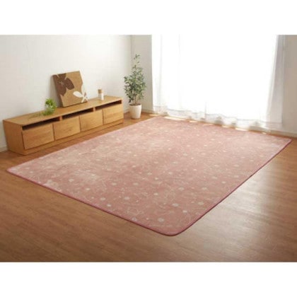 ホットカーペット対応 フランネルラグ ウサギ柄 3畳 約200×250cm ピンク 9845027