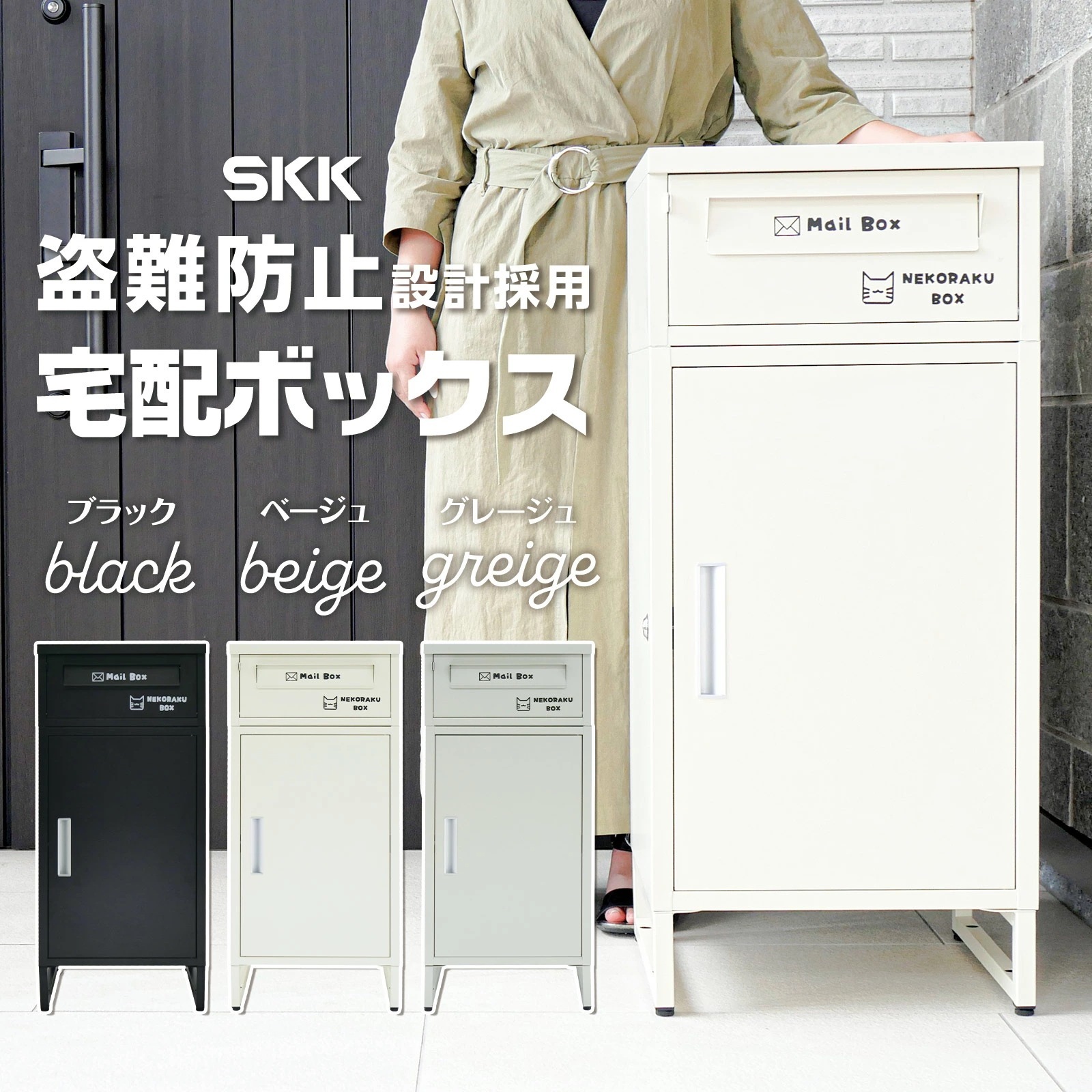 ネコラクボックス デリバリーボックス 宅配ボックス ワンプッシュ 施錠 ポスト 一体型 複数投函 上部 開閉 盗難防止 置き配 通販 メール便 手紙 配達 SKK