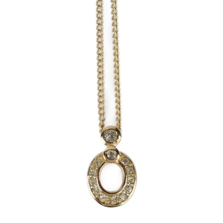 美品 Christian Dior クリスチャンディオール ネックレス - ネックレス メタル ゴールド ラインストーン CDロゴ【本物保証】
