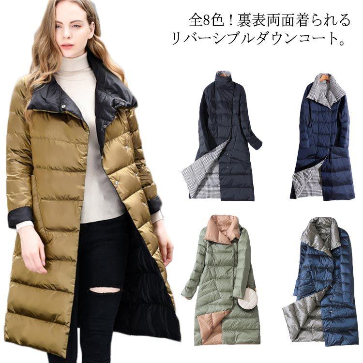 ダウンコートレディース軽量リバーシブルアウターロングコート薄ロング丈スリム大きいサイズキレイめお洒落暖かい防寒着