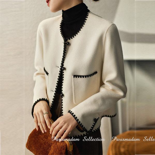今週新着商品新品掲載!ノーカラージャケット ビジネスジャケット 改まった席に パイピング ホワイト 長袖 ショートジャケット 細く見える通勤通学20代30代40代50代60代